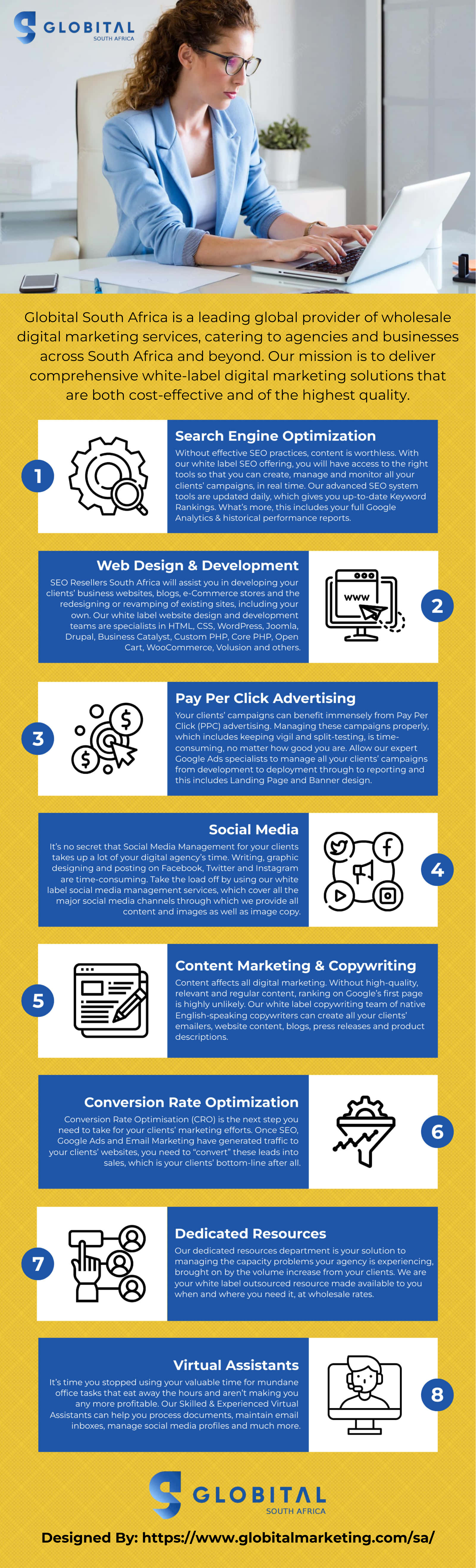 Globital South Africa is a leading global provider of wholesale digital marketing services, catering to agencies and businesses across South Africa and beyond. Our mission is to deliver comprehensive white-label digital marketing solutions that are both cost-effective and of the highest quality.